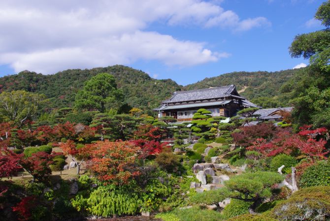 毛利庭园和毛利博物馆离防府天满宫约 2 公里,这里有山口最精致的庭园。庭园宽广,一年四季都有各种值得一观的景色。欣赏平静的湖泊和秋天五彩斑斓的树叶。博物馆展示各种文物,如毛利氏的官服、文字作品和艺术作品。