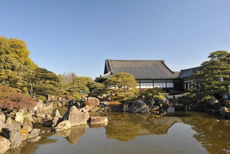 庞大的宫殿建筑群由五栋主要建筑组成,每栋建筑都有许多房间。您可以细细观赏,品味由著名艺术家狩野探幽和狩野尚信创作的精美屏风画。这里有一座壮丽的日式传统园林、一座观赏性梅园和数不清的枫树,入秋之后,这些枫树会呈现出绚丽的色彩。