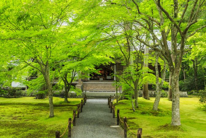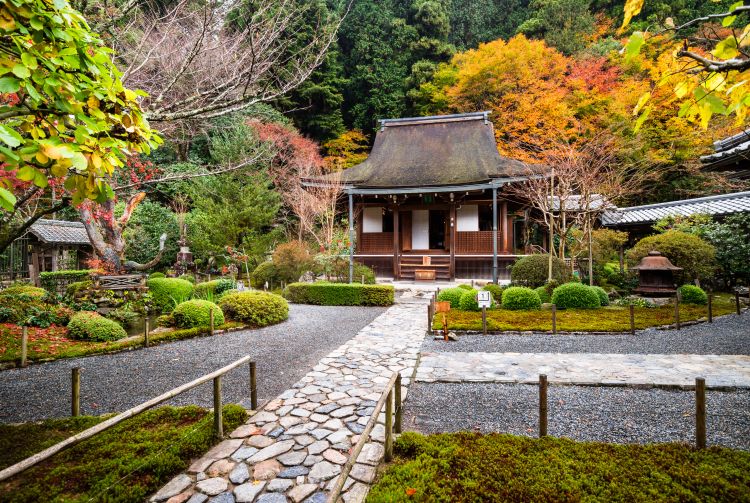 三千院四周有许多较小的寺庙,大多属于天台宗。一条迷人的山间步道将所有寺庙连接起来,步道的终点是风景秀丽的音无瀑布。