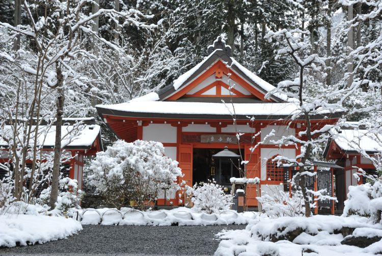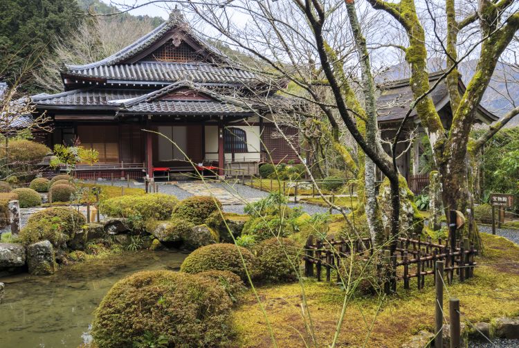 寂光院同样属于天台宗。它的历史可以追溯到 1,000 多年以前,但主殿于 2000 年毁于一桩纵火案,并于 2005 年重建。