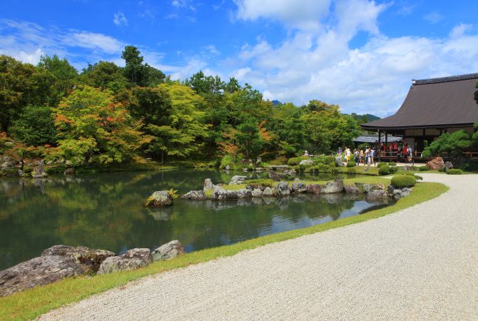天龙寺是嵯峨野和岚山地区最知名的寺庙。天龙寺由当时的幕府将军足利尊氏于 14 世纪建造,用以悼念命运悲惨的后醍醐天皇。