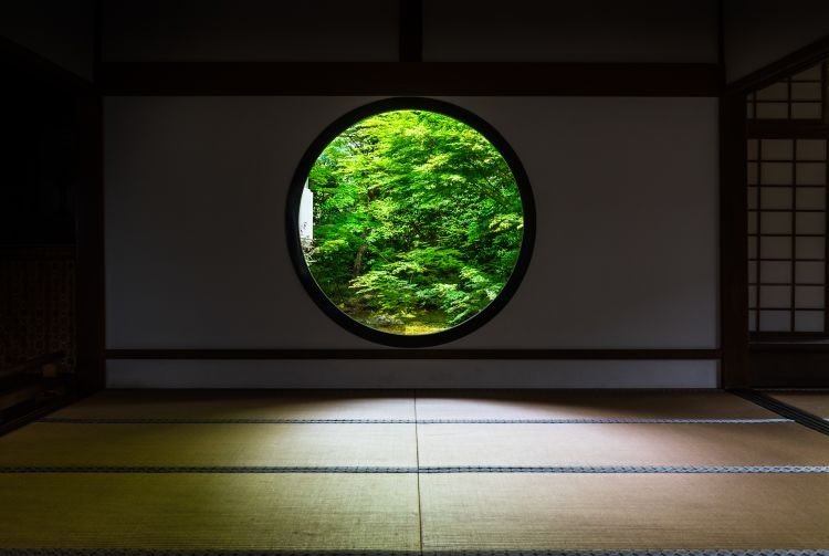 不远处就是建于 14 世纪中期的源光庵,因可俯瞰庭园美景的一圆一方窗户而闻名。寺庙主殿天花板上的木板有过一段黑暗的历史:1600 年,伏见城领主及家人在城堡沦陷时自杀,在地板之上留下了斑斑血迹。