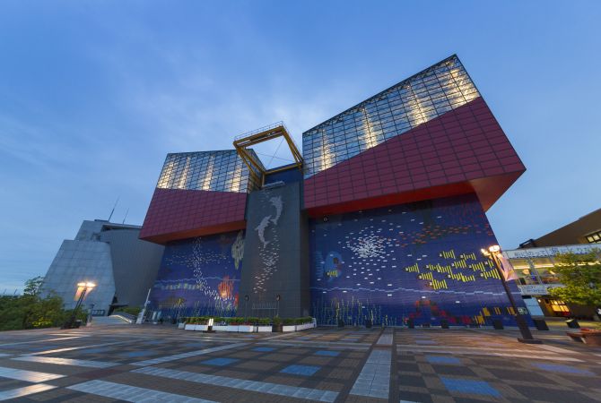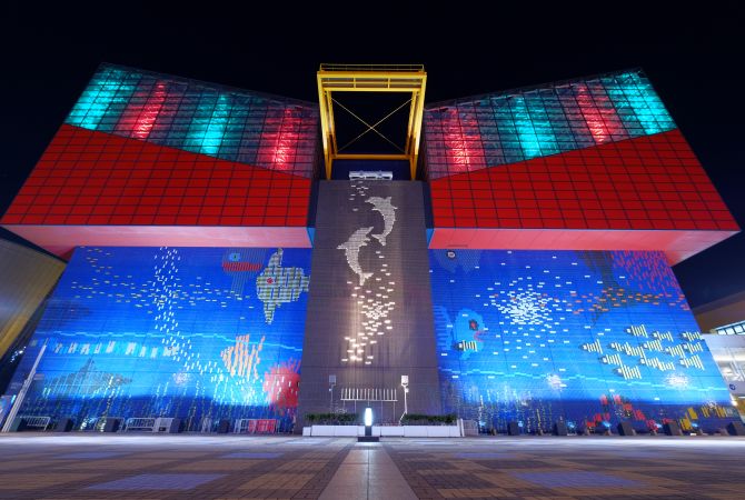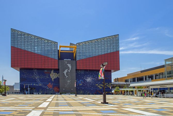 海游馆为世界上最大、内容最丰富的水族馆之一。馆内数层楼高的水族箱内有鲸鲨、企鹅及各种栖息于太平洋的生物,精心重现了海洋栖地景观。