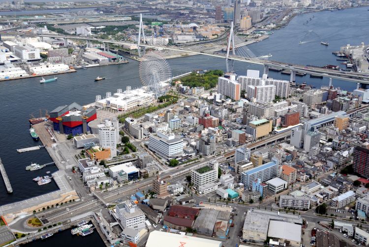 搭乘 JR 环状线或中央线地铁至大阪站或梅田站,即可抵达湾区。