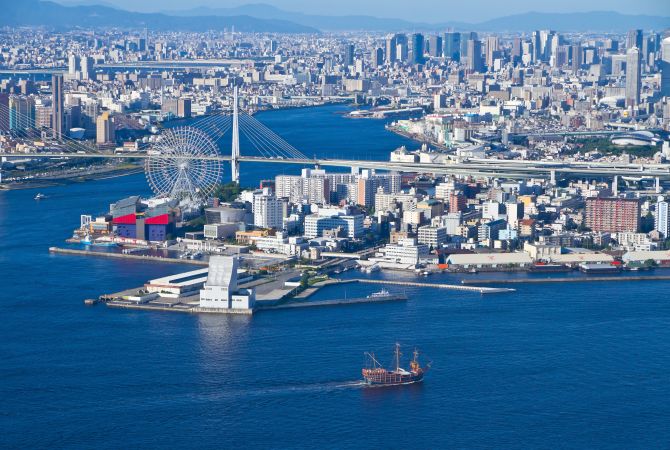 到大阪湾走一遭,您就会了解到大阪是一座货物吞吐量相当大的港口城市。除了港口之外,大阪还将湾区发展成了一流的旅游景点,有世界级的游乐园"日本环球影城"、海游馆和户外购物中心,更能享受凉爽的海风。