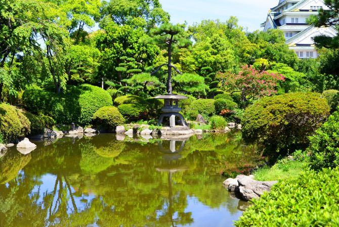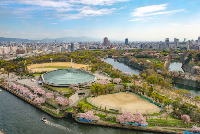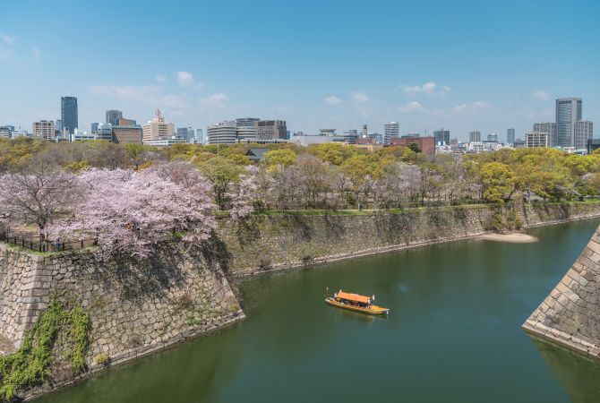 大阪城及周围舒适的公园无疑是休闲放松的最佳场所,可让人们暂时逃离城市的钢筋丛林。登上天守阁顶端,俯瞰广阔的城堡庭园及邻近的摩天大楼。亦可带上便当盒,在樱树和杏树的掩映下享受野餐,春天百花齐放之时,这里的景色令人陶醉。