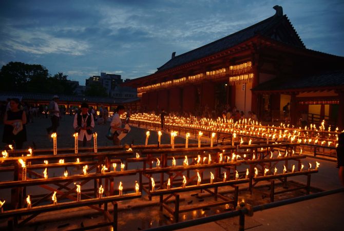 四天王寺是日本历史最悠久的官方寺庙,内有一座五层佛塔、独特的建筑以及多项季节性祭典。这座寺庙不仅是旅游景点,也是当地居民经常造访的地方,秋季的盂兰盆节时人气最高。