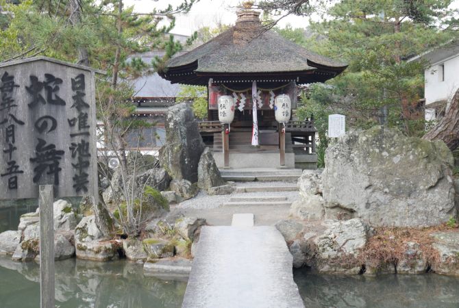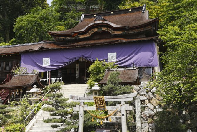 从长滨港搭乘渡轮前往郁郁葱葱、山峦起伏的竹生岛。据说这座岛本身有一股神秘的力量,能让愿望成真。您可以造访宝严寺色彩亮丽的宝塔。在都久夫须麻神社,您可以试着将一块瓦片扔向远处的鸟居,如果瓦片穿过鸟居,便可心想事成。