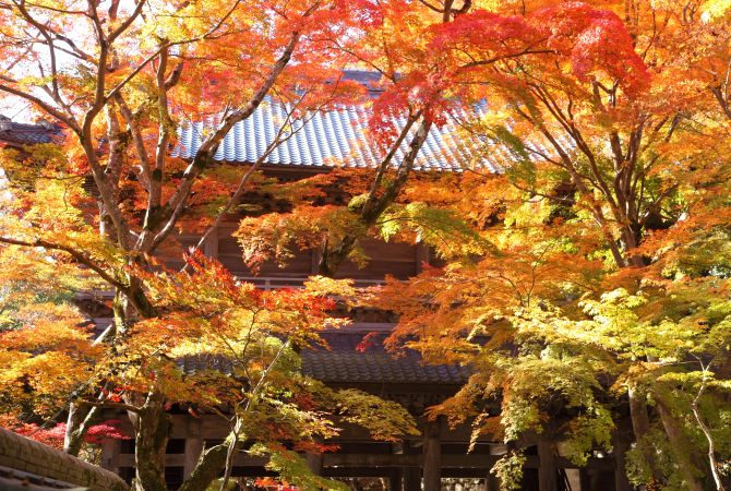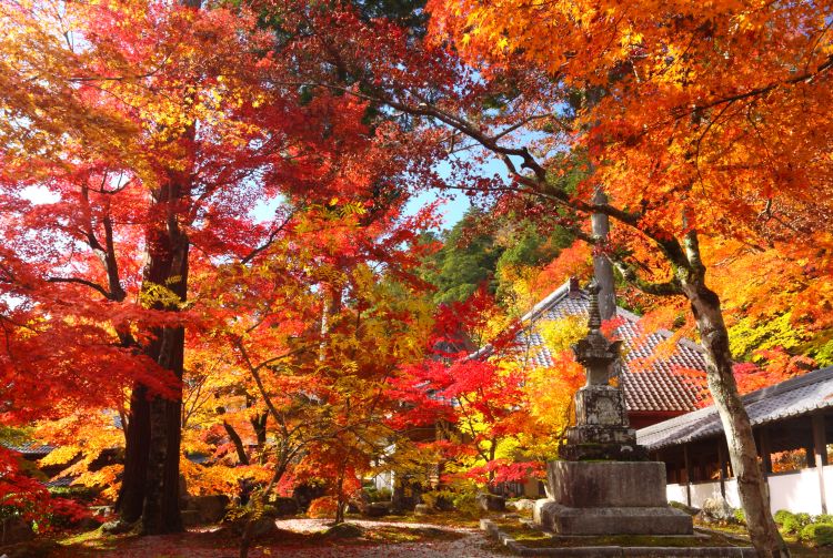 永源寺是一座以水为信仰的禅寺。该寺位于东近江市的山区。由于该地区发展起来的水文化,这里被列为日本遗产地。秋天,寺院里的树木红似火焰,将通往寺庙的道路变成了一条红色的隧道。
