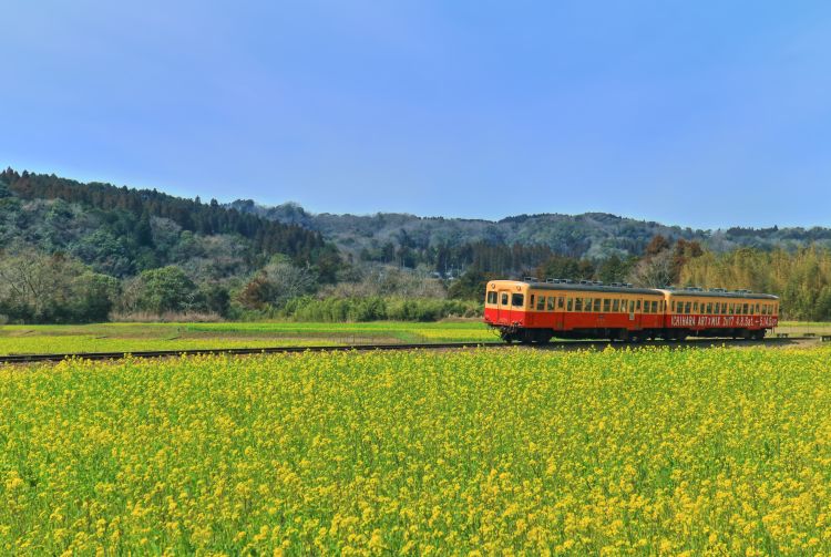 小凑铁道长 39 公里,从五井西岸延伸至大多喜町。老式火车通过柴油机而非电力驱动。最旧的一列火车自 1962 年投入使用。火车经过遍地野花、稻田和古色古香的城镇。