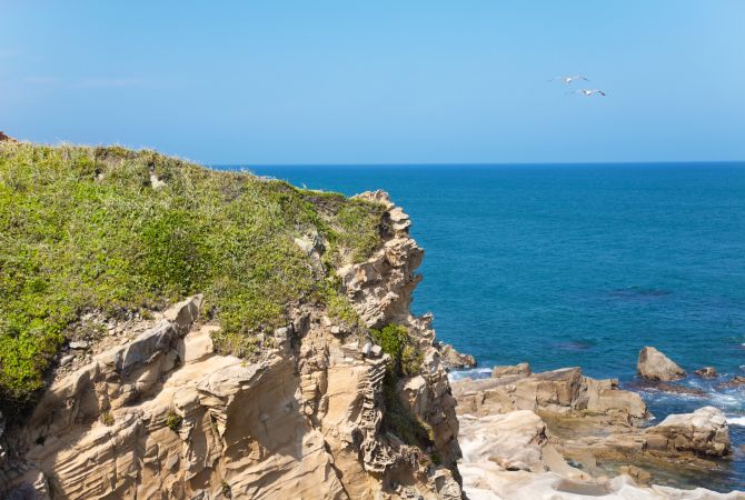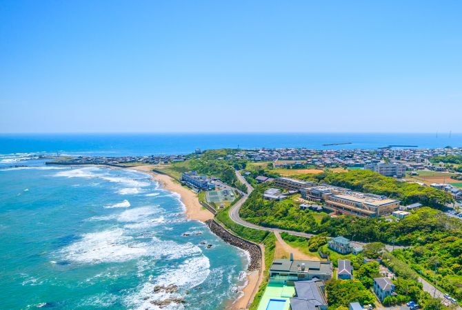 九十九里滨位于千叶房总半岛东北海岸,是一片很长的沙质海滩。这是日本第二长的海滩,沙滩绵延 60 公里,海水清澈无比。人们纷纷来到这片海滩,体验风筝冲浪和立式划桨冲浪,而勇于挑战自我的冲浪者会划得更远,希望挑战巨大海浪。