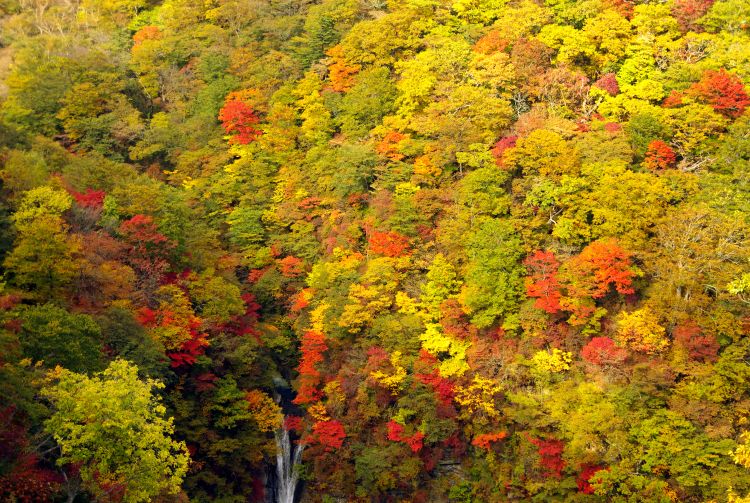 那须地区拥有全关东最漂亮的森林。循着远足路径,您可以欣赏那须连峰之中大大小小的瀑布。踏上山坡低处的吊桥,可近距离欣赏优美的自然景色。秋天时分,那须连峰披上令人难忘的华彩衣裳。