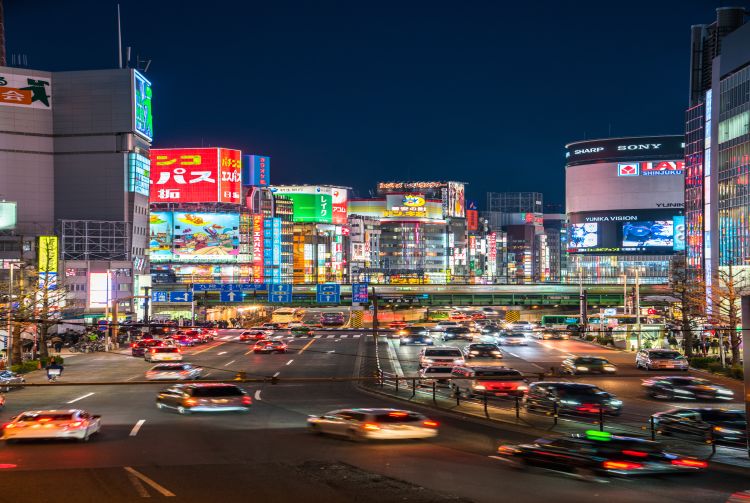 霓虹闪烁的新宿是东京的娱乐中心