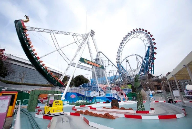 紧邻东京巨蛋多功能娱乐场馆的是东京巨蛋城,这是一处老少咸宜的游乐园。其中一个游乐设施是雷电海豚 (Thunder Dolphin) 过山车,它会高速穿过一幢建筑。