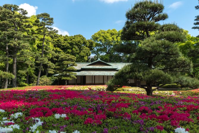 前往皇居东御苑,在精心修剪的日式庭园中漫步,欣赏古老的城墙。花园为对外开放。跑步和骑自行车的民众经常绕行皇居,有机会亦可以加入他们。
