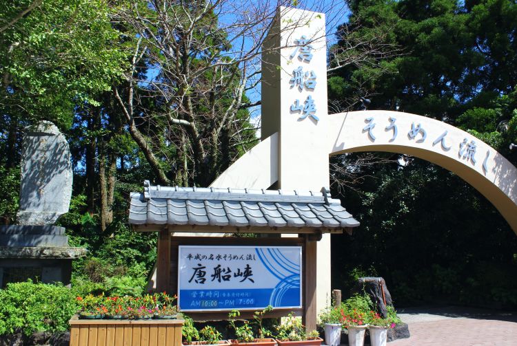 若没品尝过当地特有的流水素面,就不能称为圆满的指宿之旅。在唐船峡流水素面中,桌子中间圆形容器里的面线会随着流水转圈。虽然用筷子夹住面线是一大挑战,但回报却很丰厚;左撇子可选择反转水流,这样更容易夹住面线。