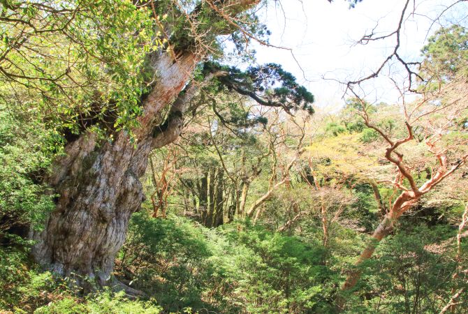绳文杉位于屋久岛中央,要徒步四到五个小时才能一睹其风采。据说绳文杉的树龄约 7,000 年。这棵壮观的杉树得名自日本史前的绳文时代,于 1966 年被发现,提高了人们对保护宝贵森林资源必要性的认识。
