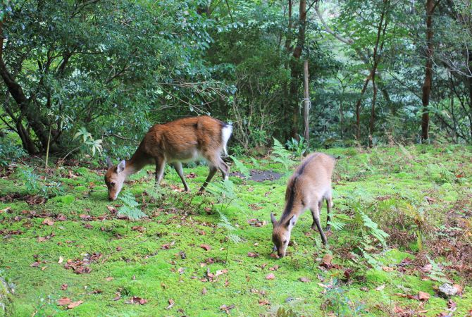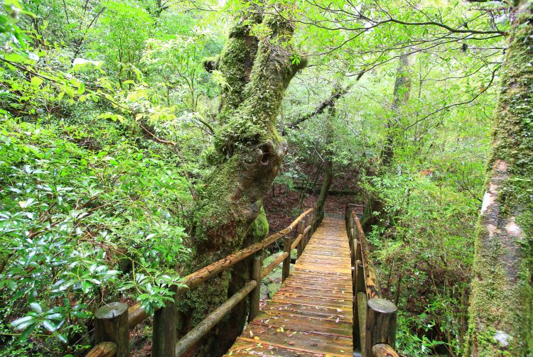 从低处的沙滩到全岛最高峰,屋久岛拥有多变的微气候,横跨亚热带到亚北极,多变的自然环境为生物多样性提供了绝佳的条件。屋久岛全年降雨丰沛,处处是茂密苍翠的森林,还有许多古老的屋久杉,有的树龄达 1,000 多年。