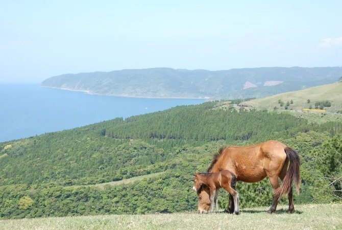 御崎马是一种原产于日本的马,栖息在串间市附近的都井岬。都井岬占地 550 公顷,是这种马儿的家园。如果时机合适,您可能会在路上遇到它们。在都井岬观光交流馆 Pakarapaka,您可以一边在海岬上欣赏全景,一边享用特制的食物和饮料,并购买当地特产。