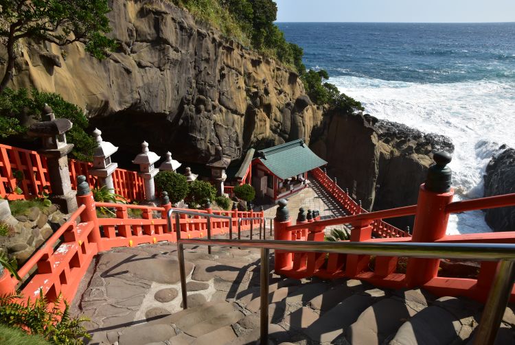 鹈户神宫可能是宫崎县最宏伟的海滨神社。在日本,设于洞穴中的神社寥寥无几,此神社即为其中之一,而洞穴下方的海景更是令人叹为观止。