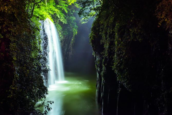 宫崎县的高千穗最知名的就是高千穗峡以及与日本最初的神明之间的联系。对旅客来说,它体现了自然之美与文化启蒙的完美融合。