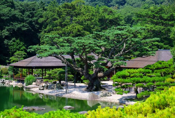 日本最美庭园之一的栗林公园就坐落在高松市。这个自然保护区一年四季的美景各具特色:春季樱花簇拥,蔚为壮观,秋天红叶动人,色彩烂漫。
