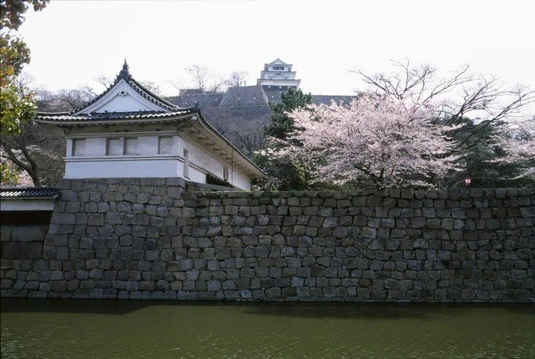 走近城堡,您会看到四周 60 米高的石墙,这是日本最高的城墙。城堡四周环绕着护城河,当游客走近城堡入口时,映入眼帘的便是主天守阁。
