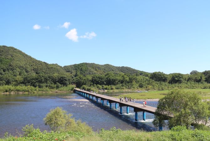 四万十川上有许多船屋,乘客需支付少量费用。如果您想独自探索航道,可以参加独木舟和立式桨板课程。您也可以从四万十市旅游协会租借自行车。