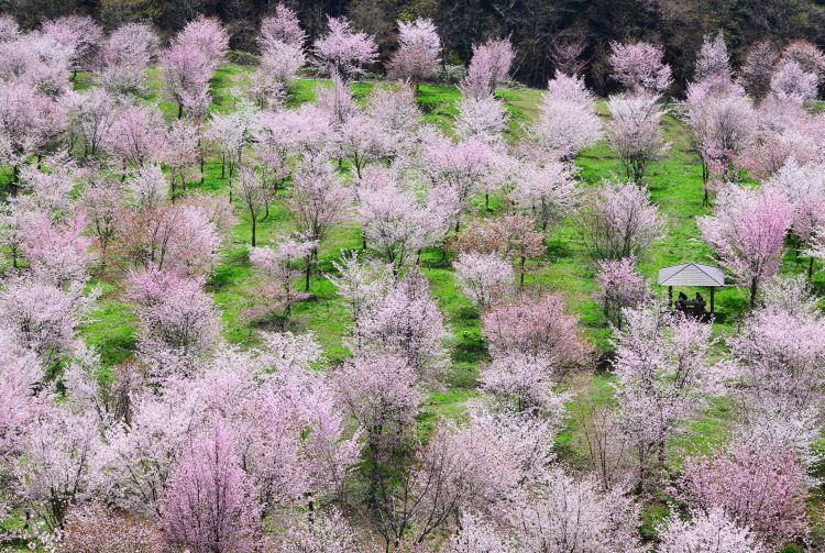 随着天气逐渐转暖,这里会再度披上春绿,樱花也会跟着绽放。盘椅神社的"大鹿樱"是会津一带的五大名樱之一。樱花爱好者从猪苗代站经 3.5 千米路程来到现场,绝对不虚此行。