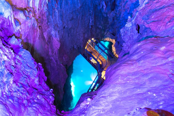 龙泉洞有三座澄澈的地下湖和种类多样的蝙蝠。洞穴商店中有瓶装的地下湖纯净矿泉水出售。有时,蝙蝠会从头顶飞过,但它们一般会藏在洞穴中的巨大钟乳石中。