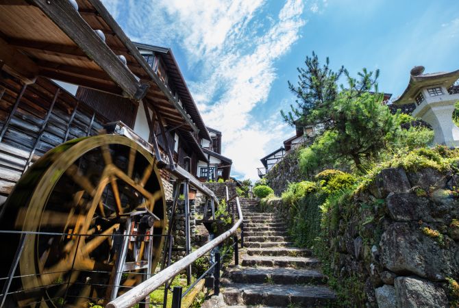 这里有一条 8 公里长的蜿蜒小道,通向邻近的驿路小镇妻笼宿,沿途能欣赏迷人的乡村景观。您可以在这里轻松度过一整天的时光,享受日本古老时代的宁静与美好。