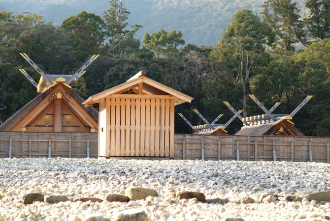 伊势神宫的内宫是最著名的区域,但约 5 公里之外的外宫及邻近的式年迁宫纪念神宫美术馆也都值得一看。二者都位于伊势的中心地带,从伊势市站步行 10 分钟即可到达。外宫的建筑与内宫相似,但两者之间存在一些差异。