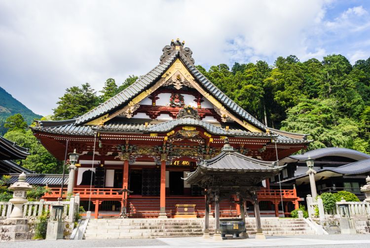 前往久远寺及周边地区,远离现代日本的城市喧嚣。身延山久远寺是日本最大的寺院之一,走过一段陡峭的石阶便进入了主寺庙。