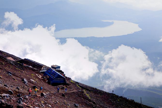 从御殿场口五合目开始登山,其海拔高度约为 1,400 米。在路线的一开始,只有少数的设施可供使用,因此请确保您携带各种必备物品,或在五合目购买齐全。沿途可欣赏绝佳景色,不过请适当补充水分以及做好防晒措施。