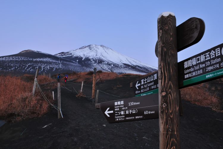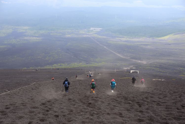 在富士山的四条登山路线中,御殿场路线坡度最缓,登山客人数也最少,因此也最不拥挤。