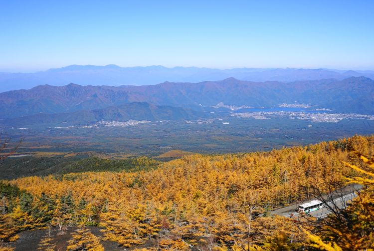 从富士山或河口湖站到五合目,从早上 6 点 20 开始,至少每个小时都会有一班车。这些巴士无需事先预约,往返车费为 2,300 日元。