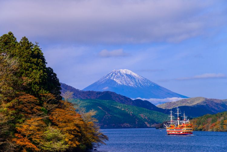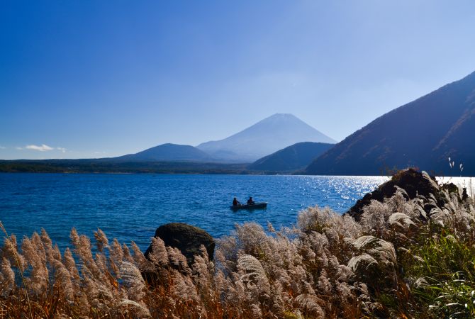 河口湖是富士五湖中交通最便利的一个,从湖的四周都能欣赏到如明信片般优美的富士山景色。在春天,您可以到产屋崎,在樱花盛放的时节,欣赏白雪霭霭的富士山,或是趁着初夏熏衣草盛开时,到大石公园捕捉富士山的美丽样貌。