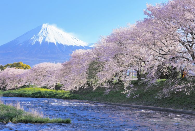 润井川发源于富士山的西南山脚,然后汇入太平洋,可以欣赏到壮丽的富士山景色。到了四月初,当河岸边的樱花争相绽放于枝头,浪漫景色更显唯美。
