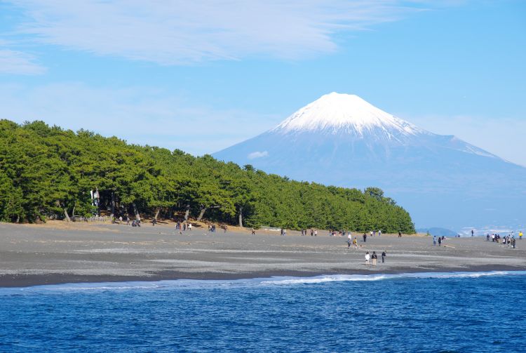 以富士山为背景的三保松原滨海松树林,曾在过去几个世纪被描绘在画作里,长久以来就是富士山最具代表性的景色之一。