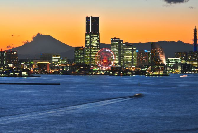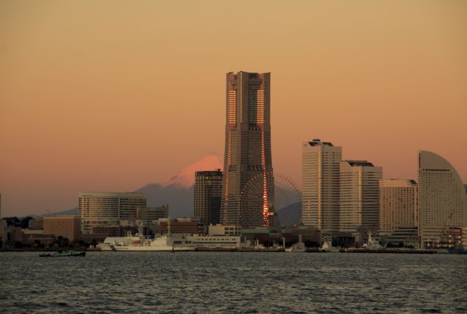 富士山是横滨天际线最抢眼的一部分,在港未来 21的许多高楼都看得到。