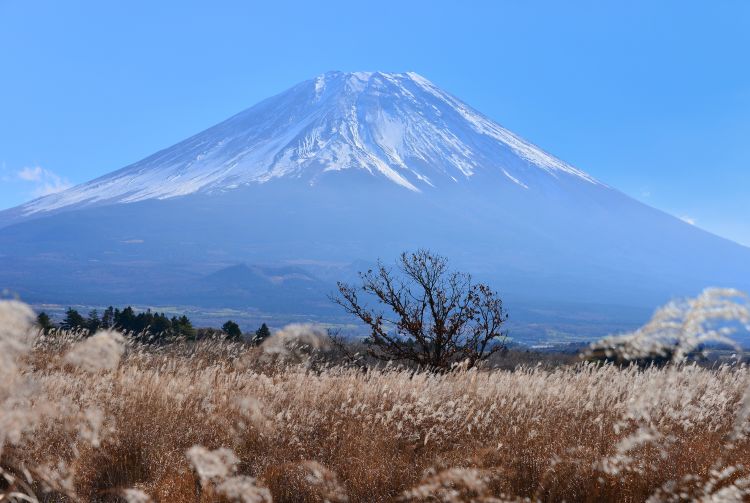 朝雾高原位于富士山的西边山脚,其广阔的平原可让您欣赏一览无遗的雄伟山景。趁着秋天造访,徜徉于金黄色的蒲苇草原欣赏富士山。