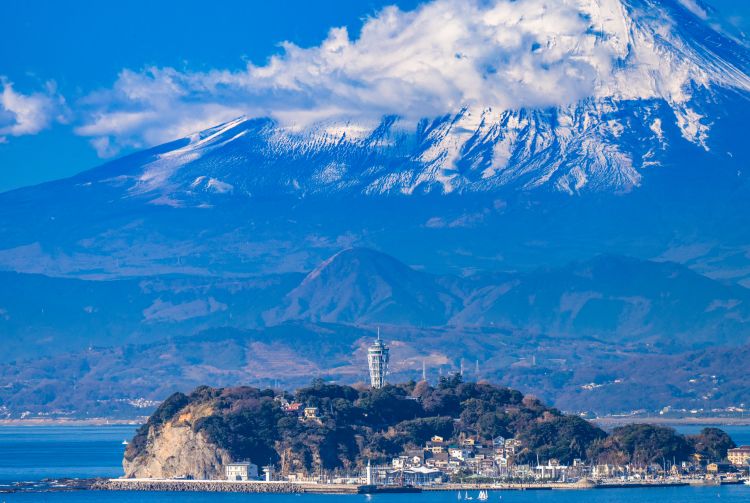 这个位于鎌仓海岸外的小岛,是邻近东京的热门旅游景点,可让您观赏美丽的富士山海滨之景。登上江之岛展望灯塔,占据有利的观景地点。由于这里气候凉爽,而且湿度较低,造就了绝佳的观赏条件。