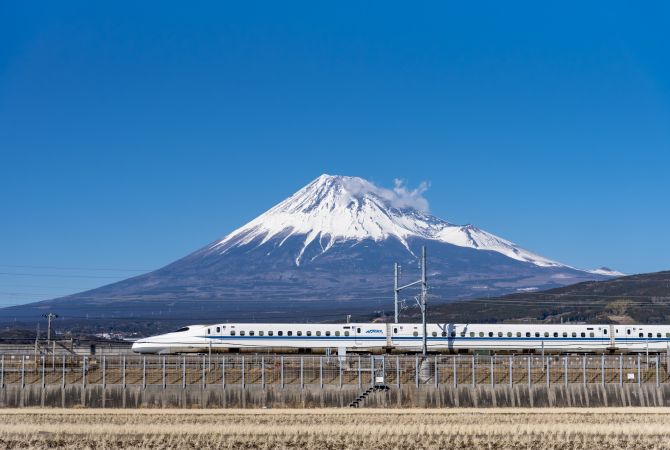 乘坐缆车可以欣赏壮观的山间风景,静冈的日本平索道缆车当然也是如此。在沿着较小山峰一路前往山顶的美丽神社途中,通过缆车欣赏富士山。