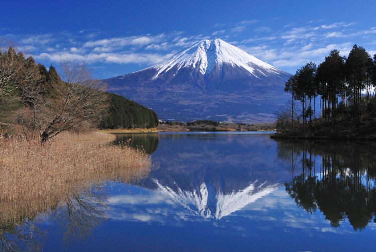田贯湖位于朝雾高原,其平静无波、宛如明镜的湖面,能映照出富士山极为清晰的倒影,是其他地方难得一见的景象。
