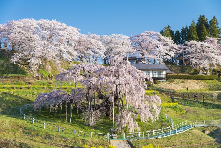 从四月中旬到五月初,您可以在北部的东北地区,以及长野和新潟 的山区看到各种各样盛开的晚樱。福岛县的三春町有一棵日本最著名的樱花树,于四月初到四月中旬绽放。
