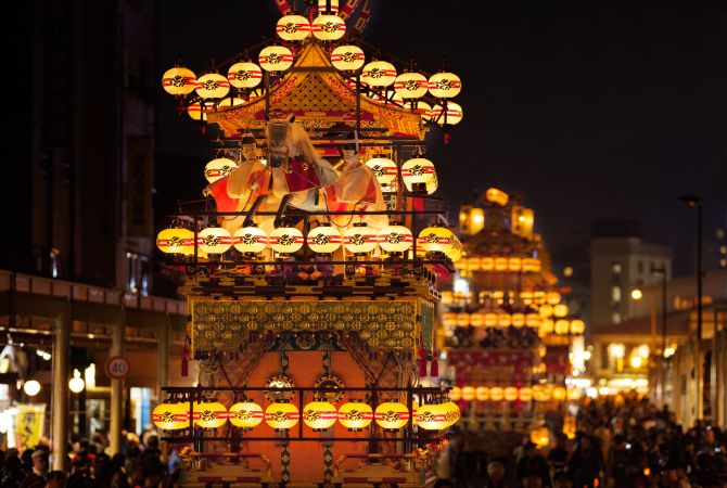 四月和其它月份一样都会举办各种各样的庆典活动。但如果您时间有限,只能参加一个,那就去春之高山祭。五彩缤纷的祭典屋台在夜间点亮,随着祭典队伍缓缓前行,犹如艺术品般绚丽迷人。
