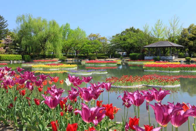 除赏樱以外,您也可前往栃木县足利花卉公园。这里每年 四月中旬到五月中旬都会举办知名的紫藤花物语节。此外,富山县的砺波郁金香公园会在四月中旬至五月初展出 300 万朵各色郁金香,形成璀璨缤纷的花海,令人目不暇接,流连忘返。