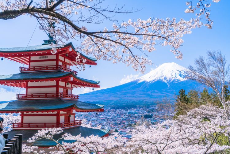 对海外游客而言,河口湖和富士吉田市可能不甚出名,但两者都是富士山附近赏樱的经典景点。河口湖有着迷人的湖畔景致,富士吉田市则有着知名的地标:忠灵塔。忠灵塔的照片经常出现在该地的宣传材料中。这两个地方的樱花景致通常在四月初到四月中旬最佳。