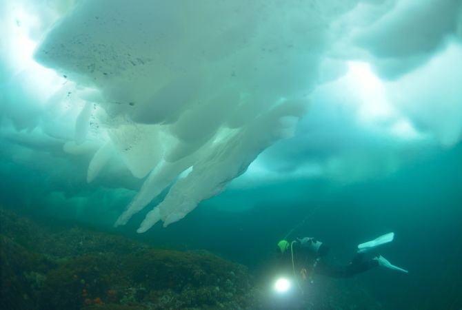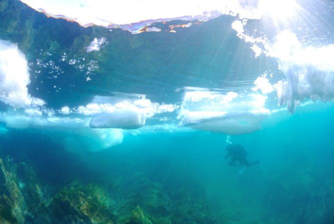 若您渴望从海底旅程获得有别以往的体验,日本会给您提供绝无仅有的机会。冬末到北海道冰潜,为经验丰富的潜水客提供寒冷刺激的挑战,让他们有机会从水底下接触冰河。在知床半岛附近冰潜的另一个好处,就是能有机会被日本人称作流冰精灵的海天使环绕。