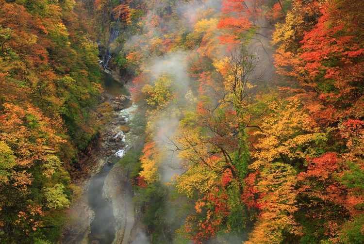 小安峡是秋田欣赏秋色的众多偏远地点之一